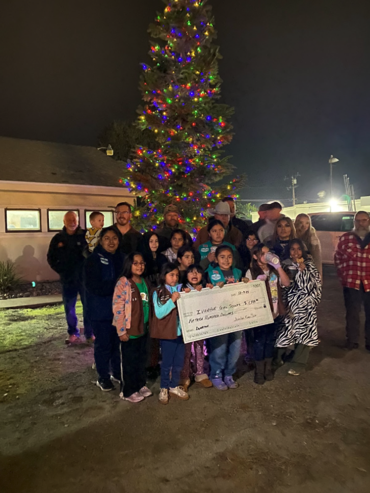 The evening featured warm hot chocolate, cookies, and a check presentation to Ivanhoe Girl Scouts Troop 7130, culminating in the lighting of the tree.
